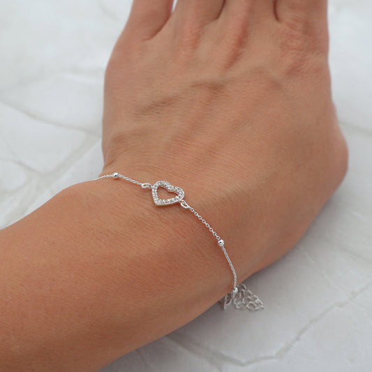 Bracelet with beads and a heart pendant with zirconia stones
