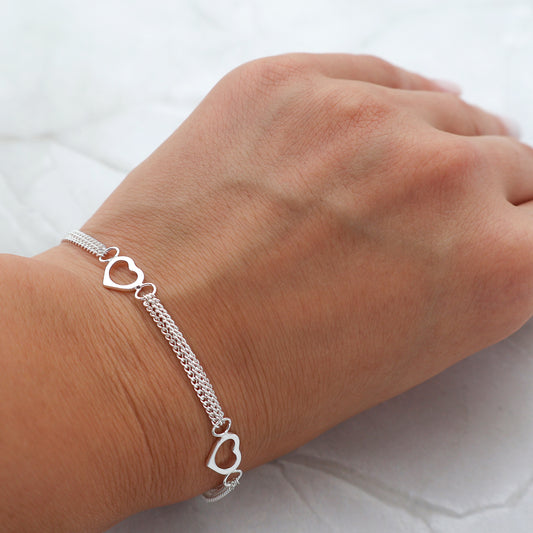 Bracelet with a triple chain and 3 heart pendants