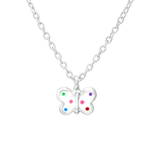 Sterling Silver Jewelry Set - Necklace and Stud Earrings White Butterfly Pendant