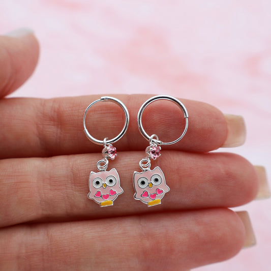 Children’s 925 Sterling Silver Earrings with Panda, Pink Bow, and Crystals