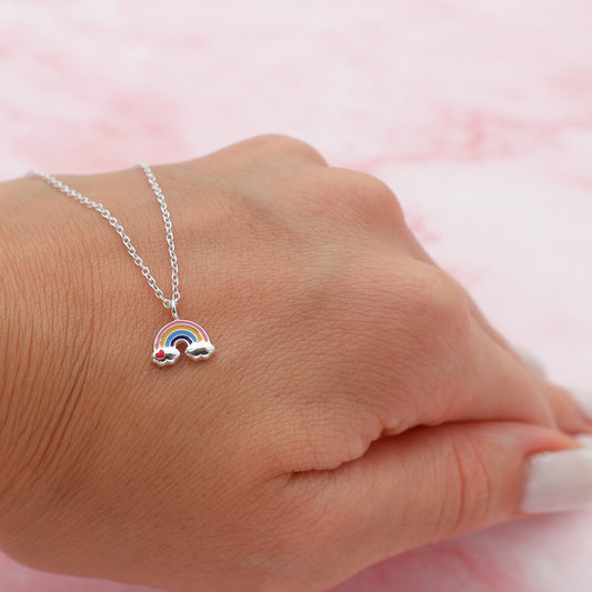 Collar con colgante de arcoíris, nubes y 1 corazón