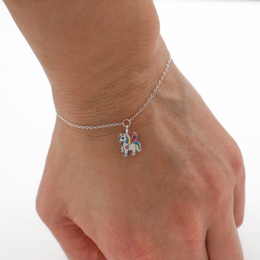 925 Silver Bracelet for Kids- Unicorn with Pink Wings and Sparkling Crystals