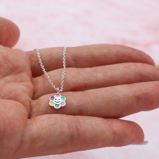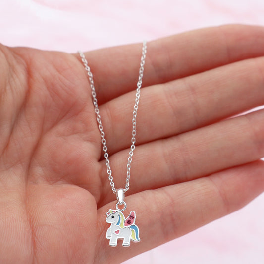 Sterling Silver Necklace for Kids with Colorful Heart Design in Epoxy Resin