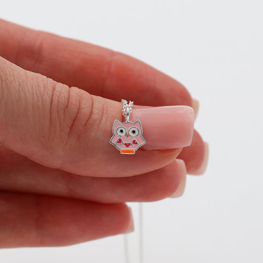 Sterling Silver Jewelry Set for Kids – Necklace and Earrings, Multicolored Owl