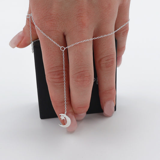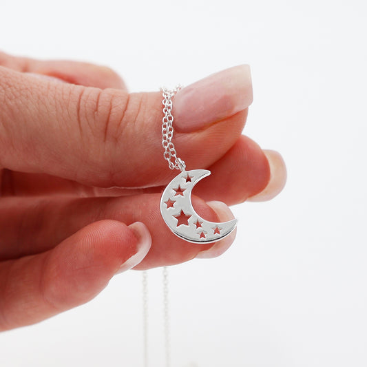 925 Sterling Silver Necklace with Crescent Moon and Star Cut-Out Pendant