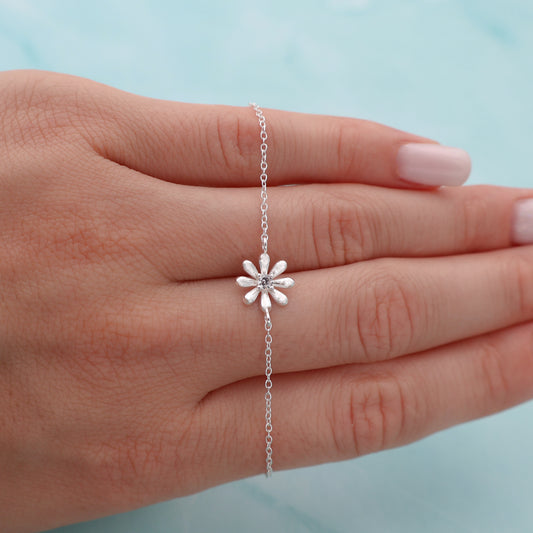 Pulsera con colgante de flor y circonita central