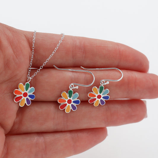 Sterling Silver Jewelry Set - Multicolor Petal Flower Necklace & Earring