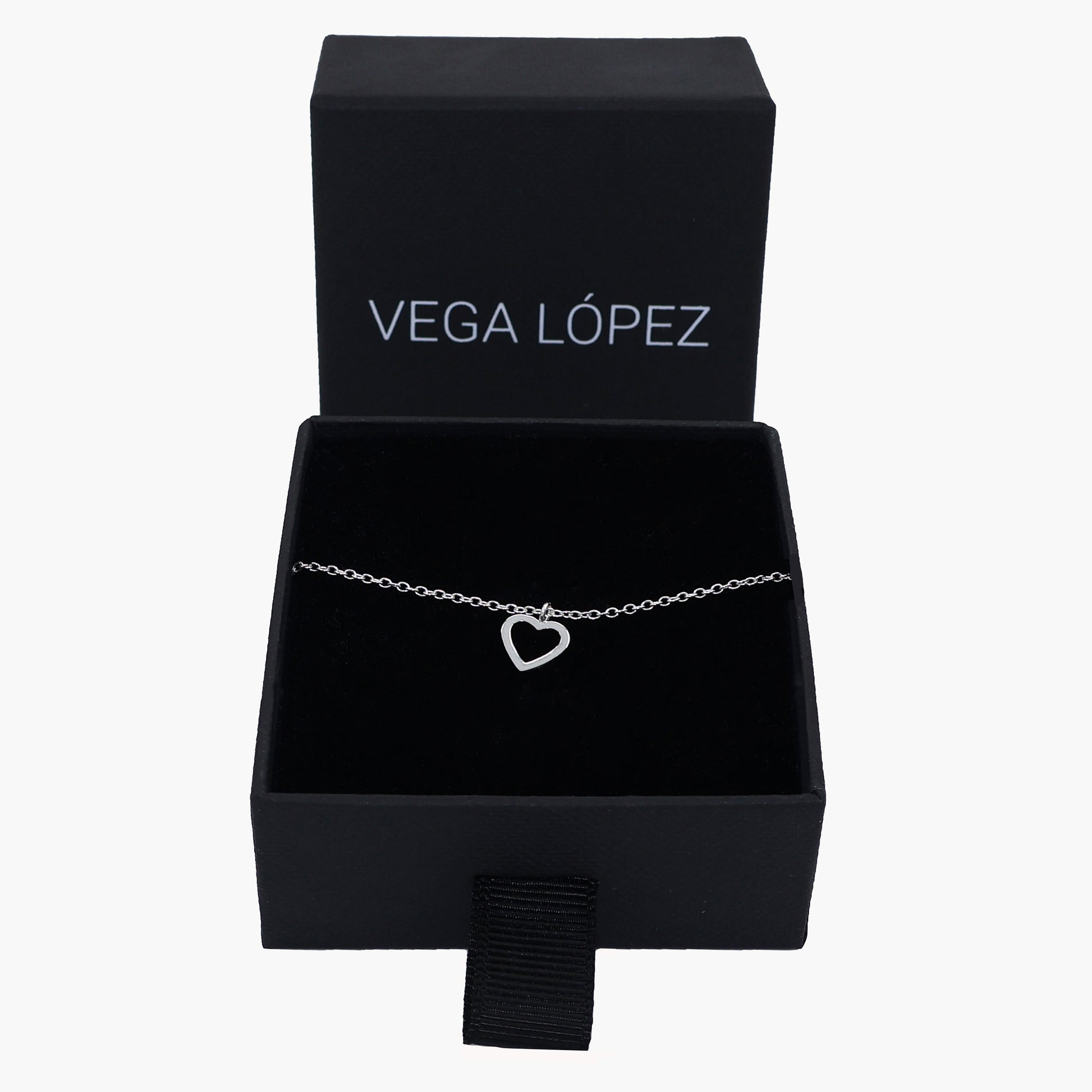 Su sofisticado diseño presenta un colgante móvil en forma de corazón con un centro recortado, que agrega un toque de delicadeza y elegancia.