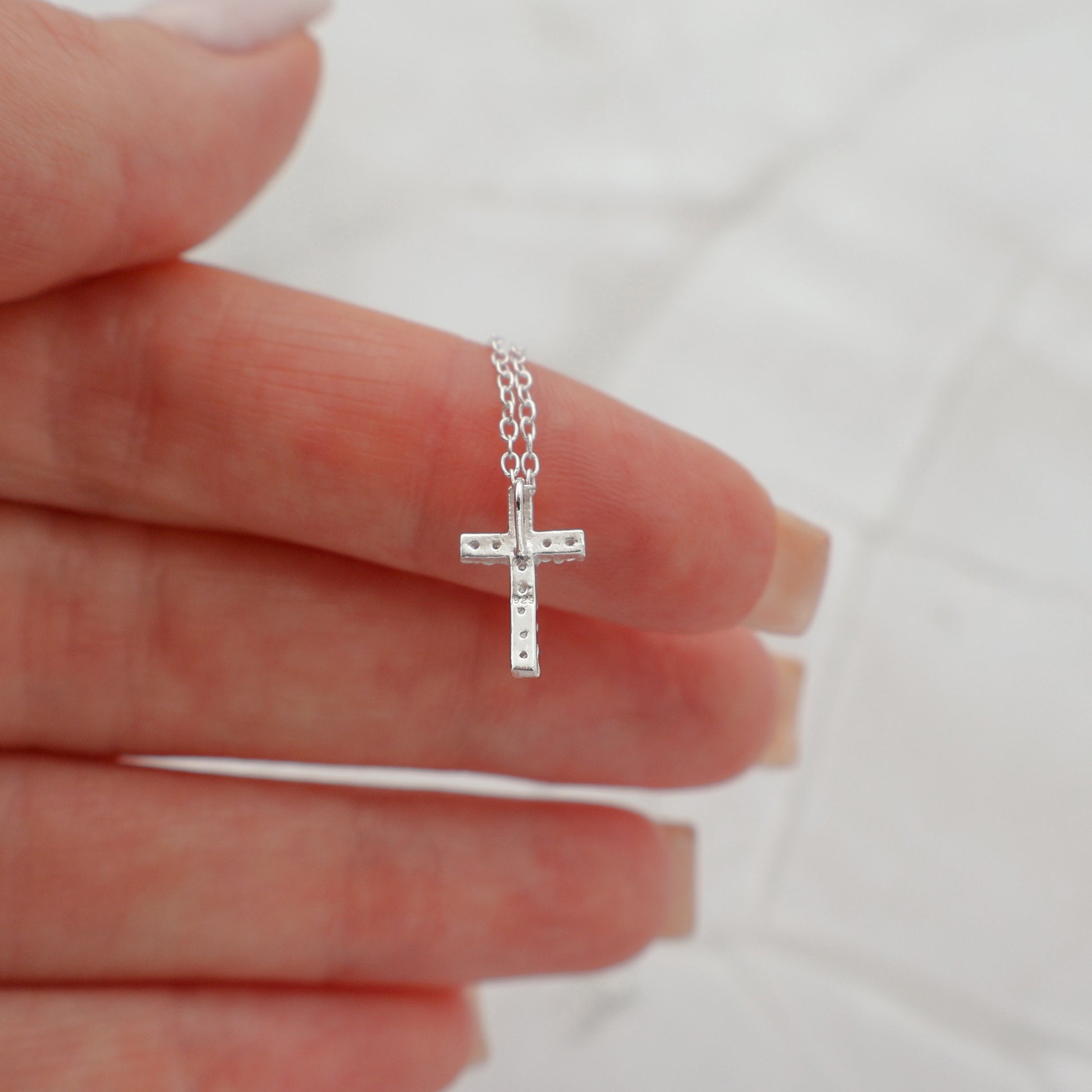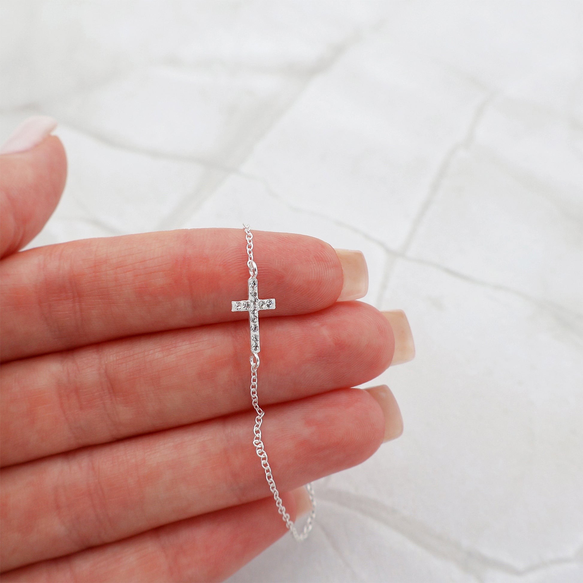 The cross necklace & bracelet set with 12 zirconia stones is crafted from high-quality 925 sterling silver, plated with 999 silver, and protected by an anti-corrosion layer for enhanced durability and shine.