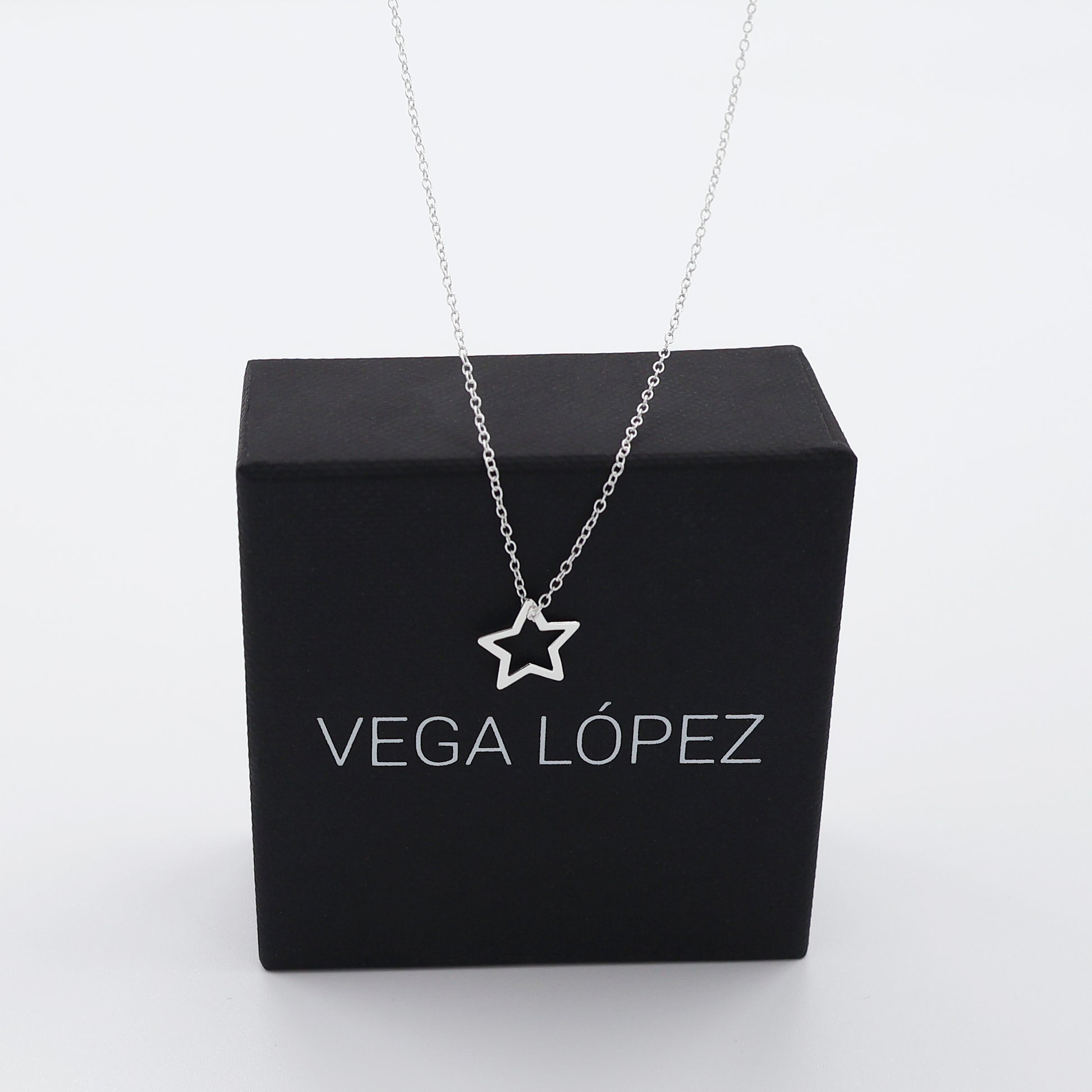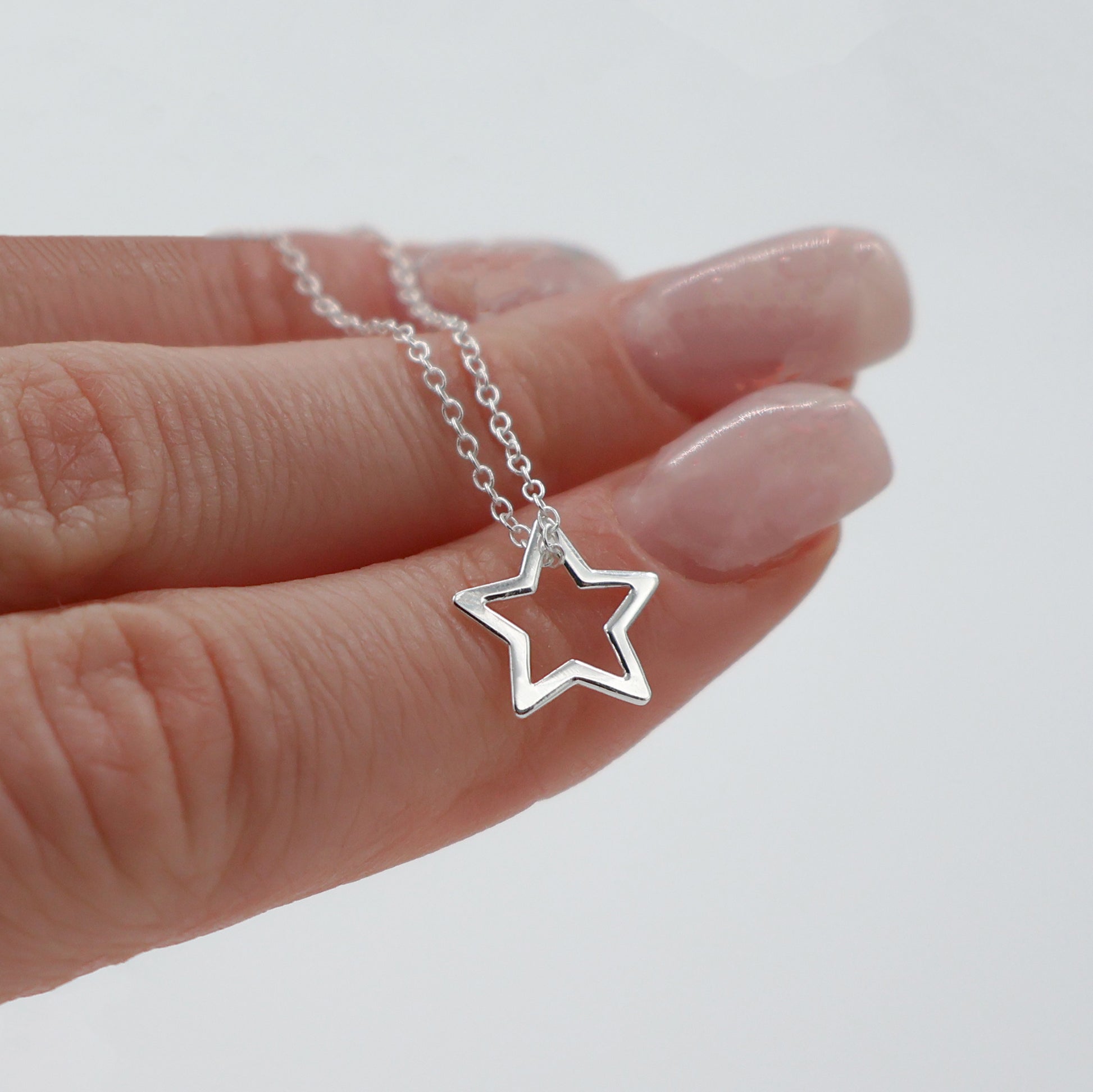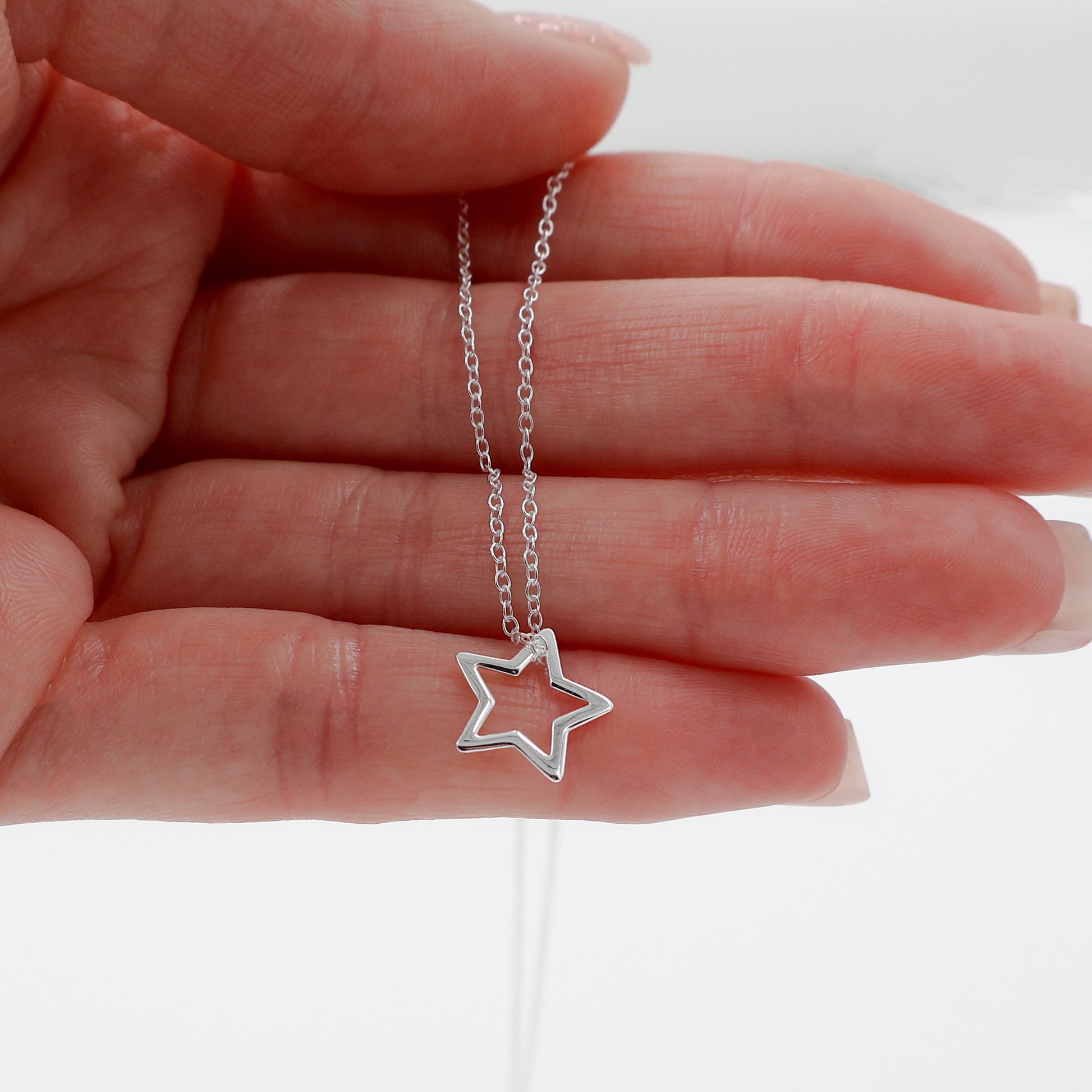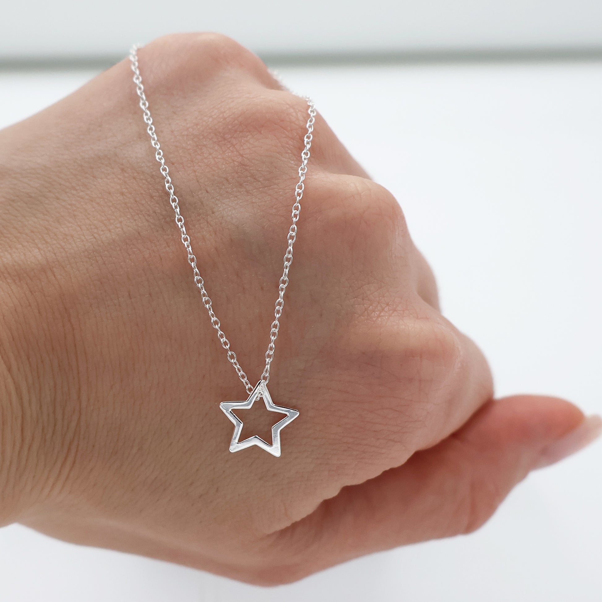This delicate necklace, crafted from 925 sterling silver, is a timeless symbol of simplicity and charm. Its unique pendant features a contoured star, elegantly hollowed at its center, measuring 11 mm. The minimalist design highlights the beauty of the star's shape, symbolizing hope, inspiration, and brilliance.