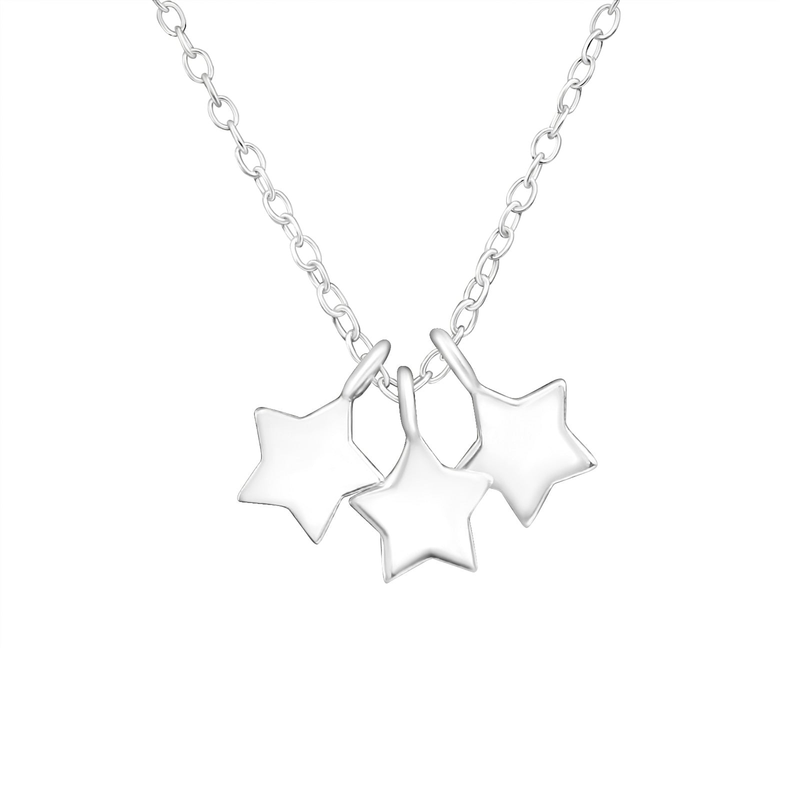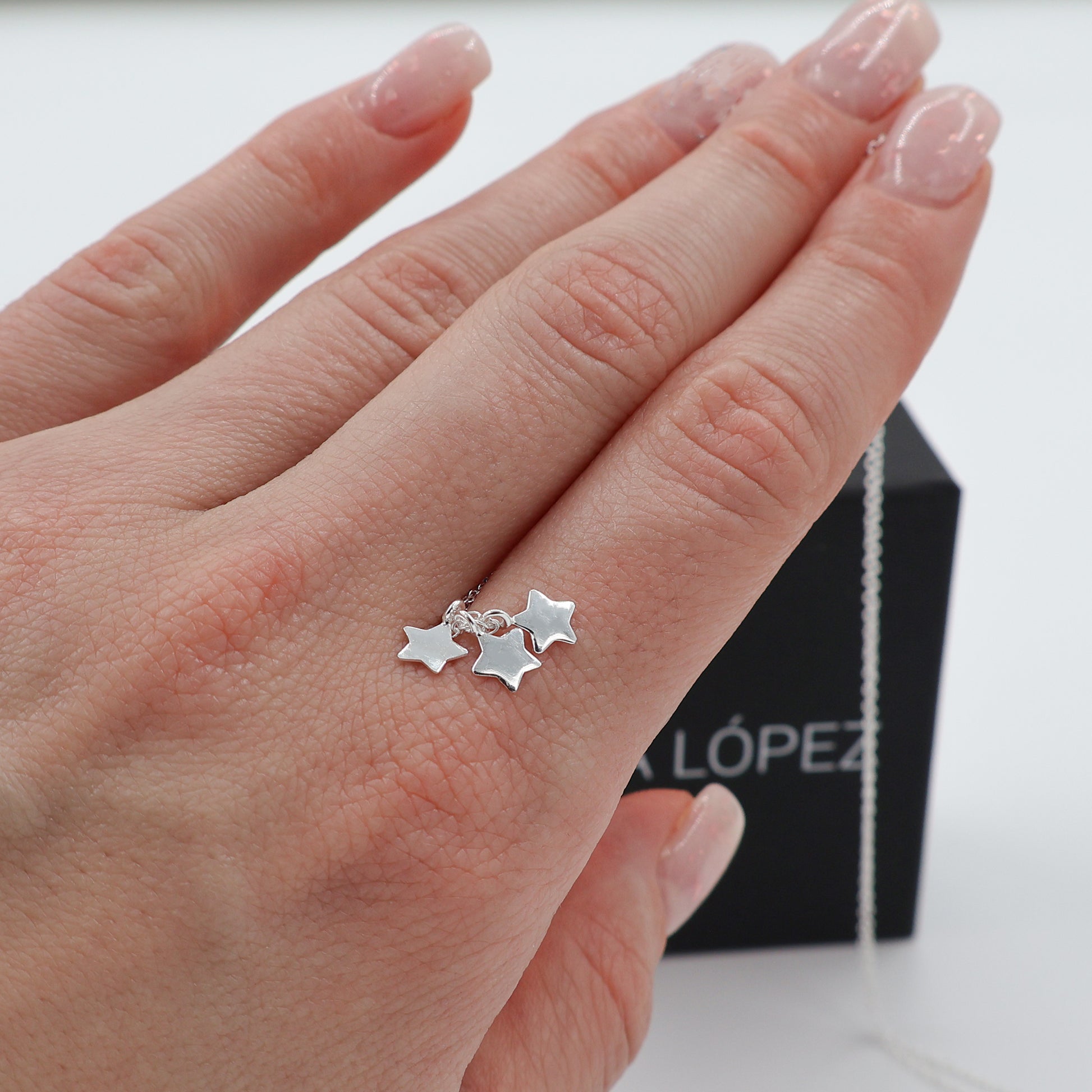 Esta delicada cadena de plata, bañada en plata 999 y protegida por un revestimiento anticorrosión, presenta tres encantadores colgantes en forma de estrella.