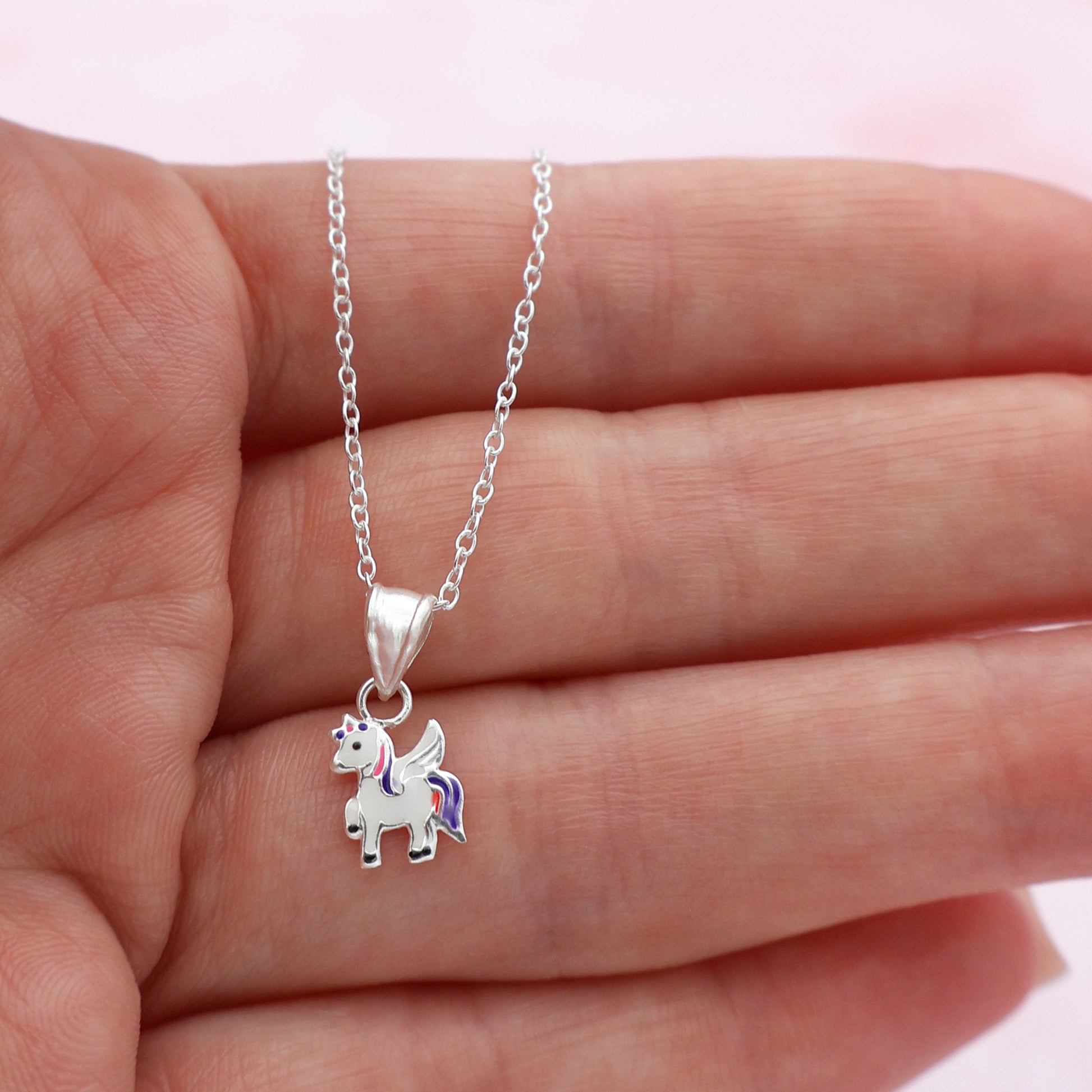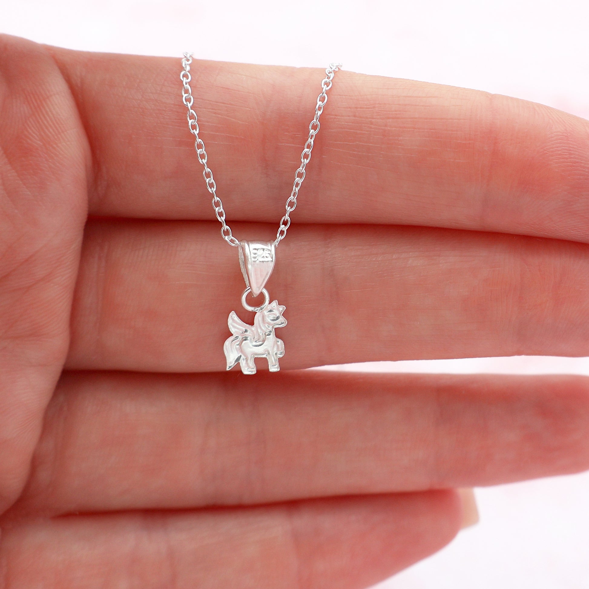 Este refinado collar presenta un colgante único en forma de unicornio, elaborado en plata 925, bañado en plata 999 y protegido por un revestimiento anticorrosión, lo que garantiza un brillo duradero y resistencia al deslustre.