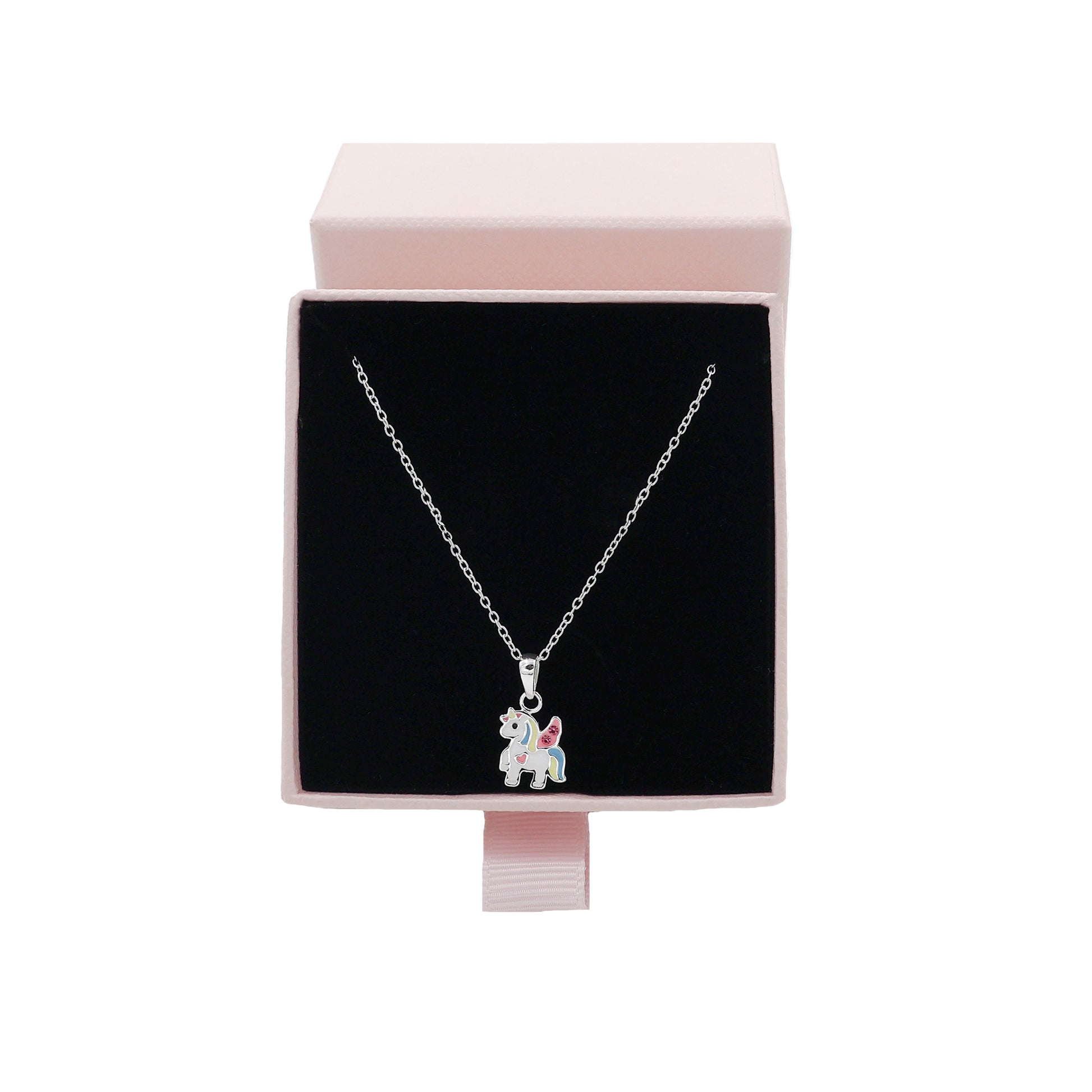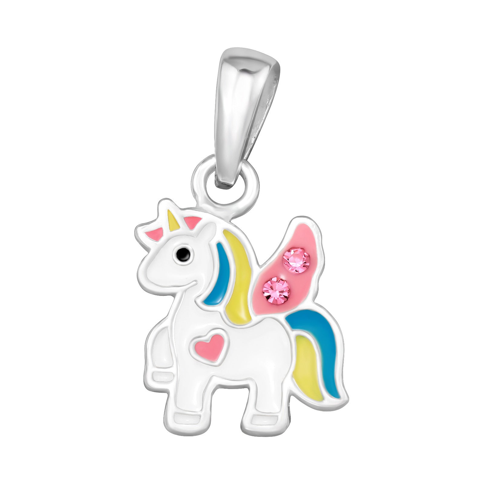 Añadiendo un toque de brillo, el diseño incluye dos cristales de colores que realzan el encanto y la elegancia del colgante.