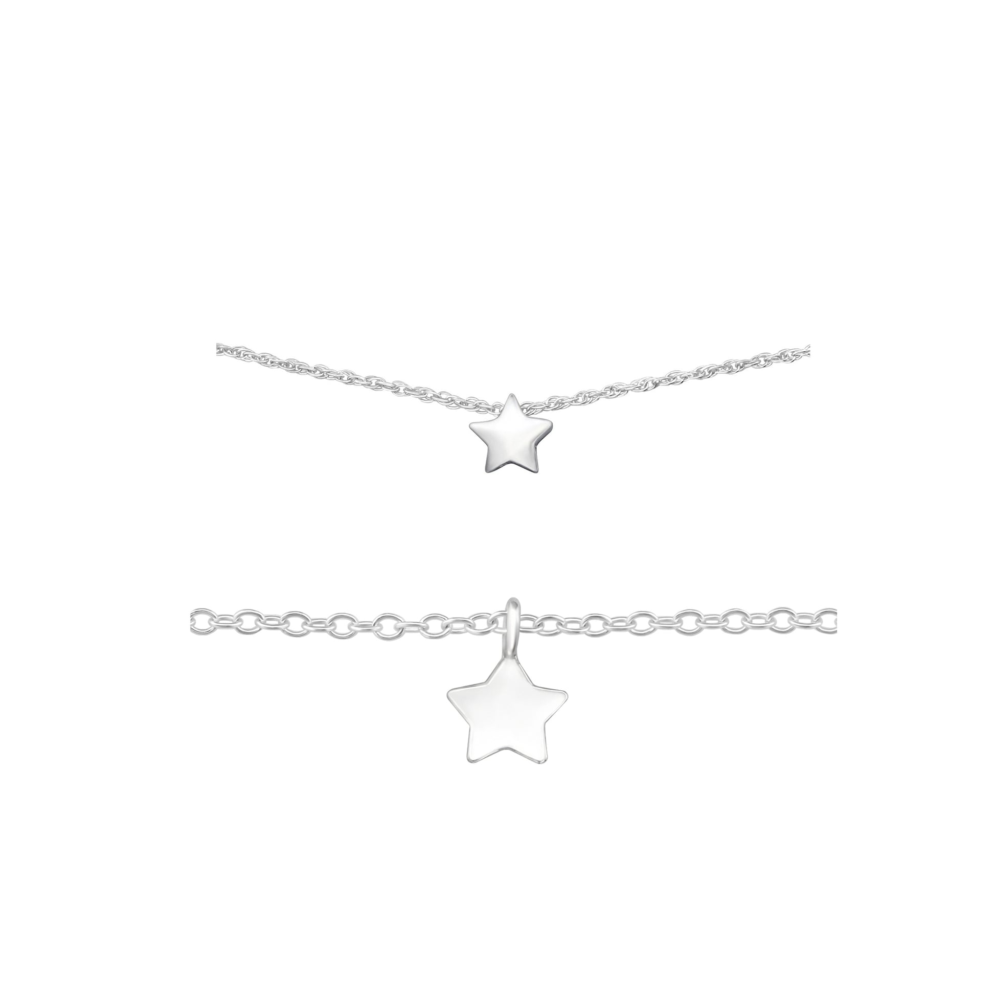 The star choker necklace & bracelet set is a delicate, celestial-inspired duo made from 925 sterling silver, plated with 999 silver, and protected by an anti-corrosion layer for enduring beauty and shine.