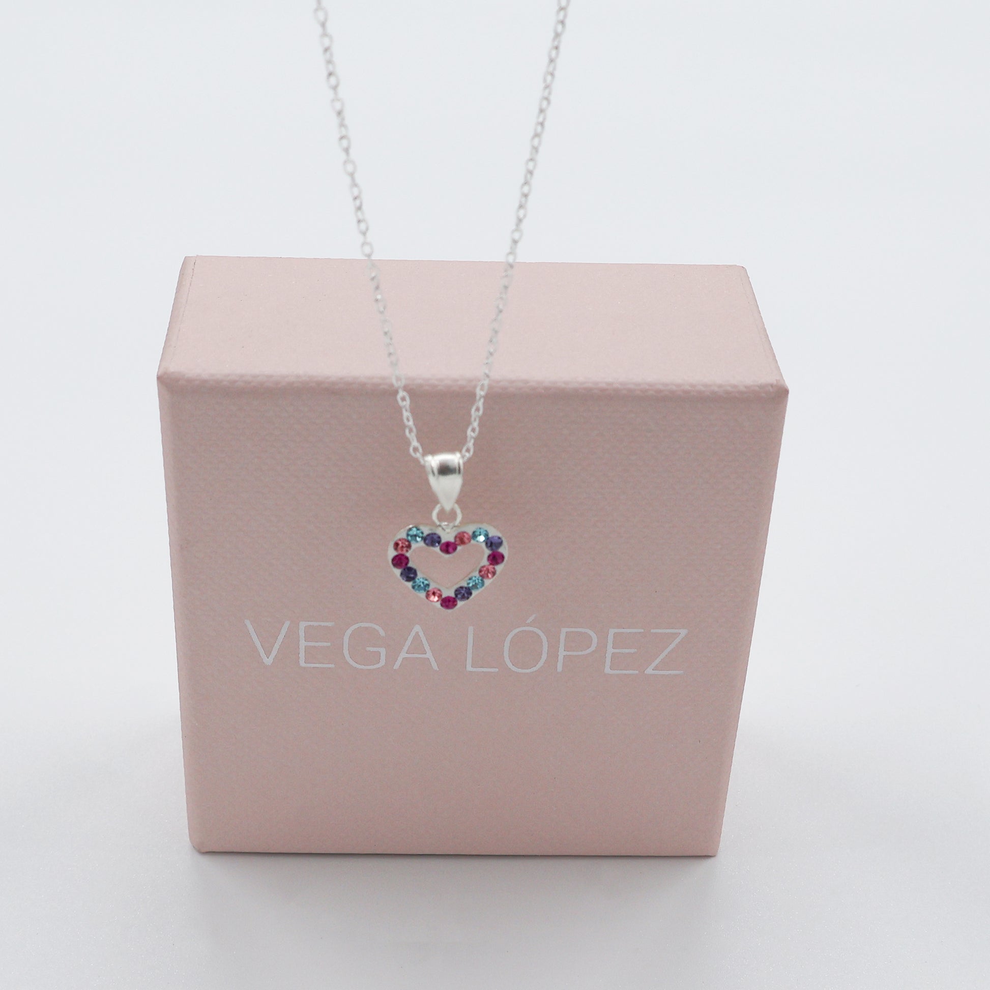 The harmonious blend of colorful zirconia and the delicately crafted heart design makes this necklace a captivating and romantic accessory, perfect for adding a touch of sophistication and sentiment to any outfit.