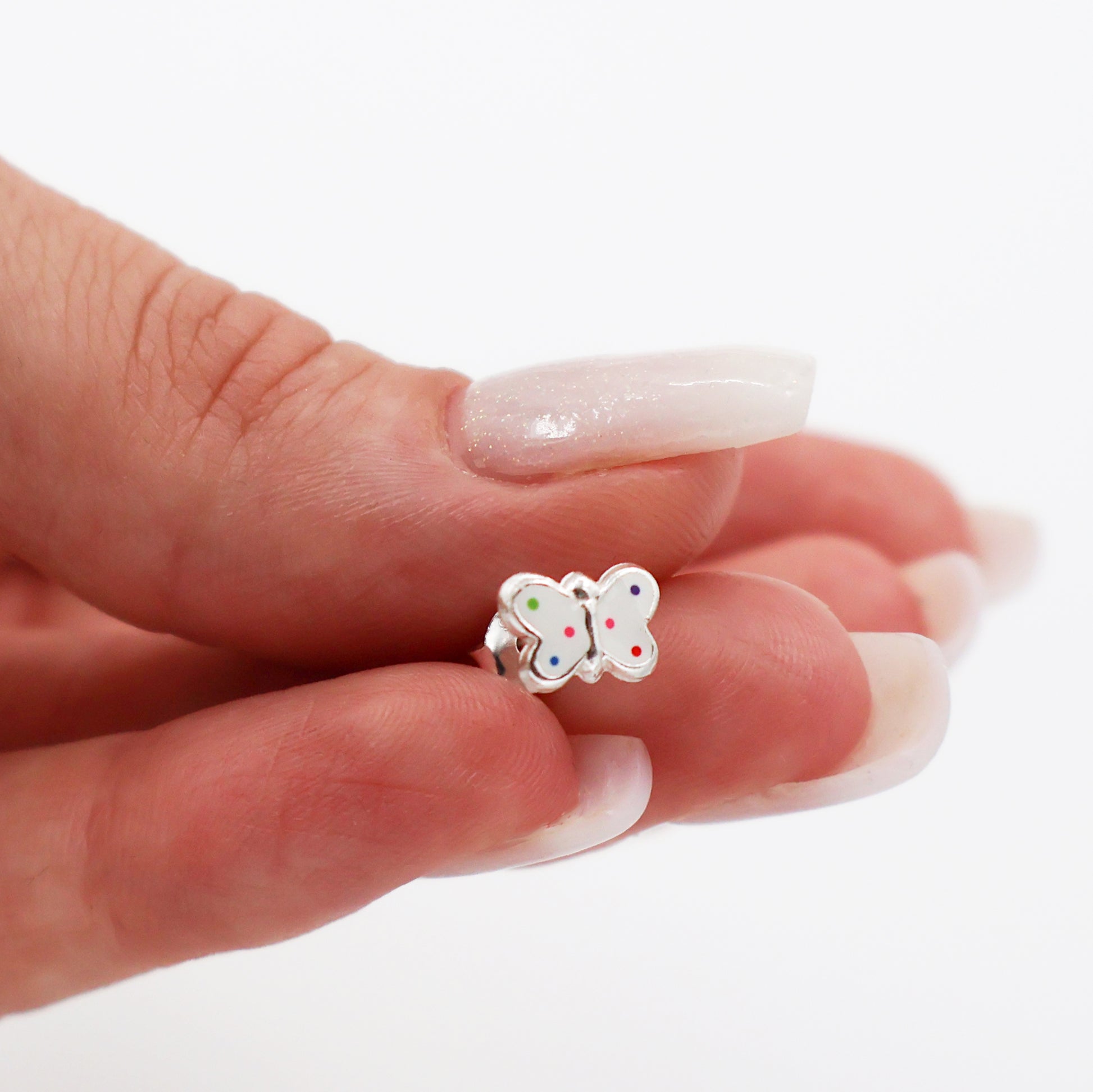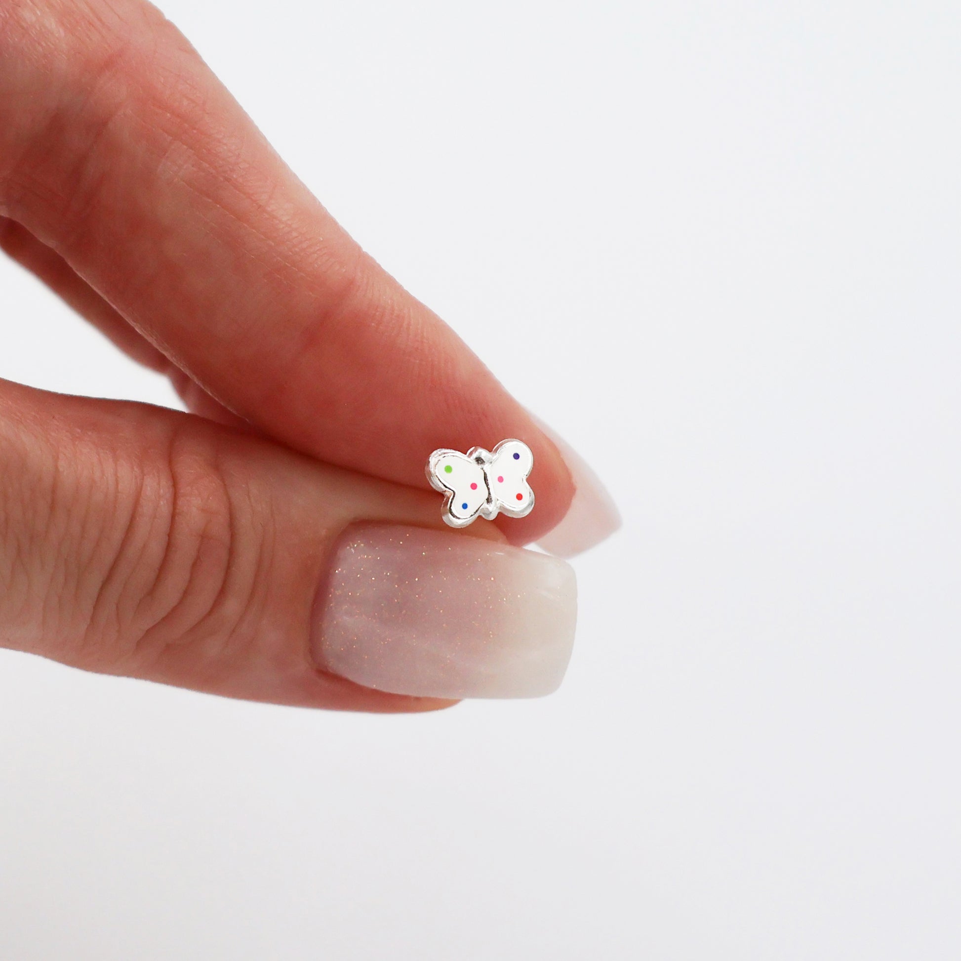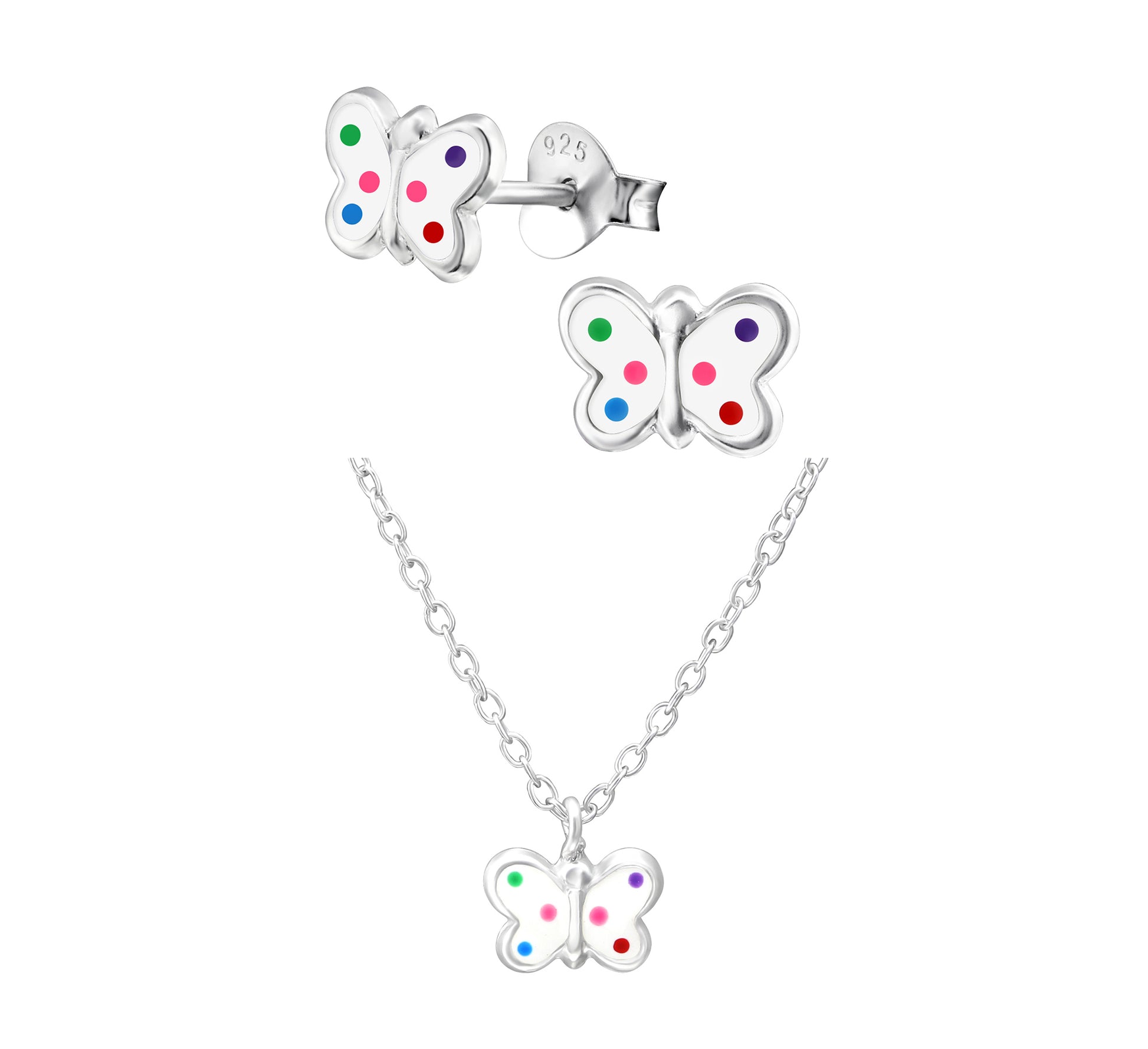 Sterling Silver Jewelry Set - Necklace and Stud Earrings White Butterfly Pendant