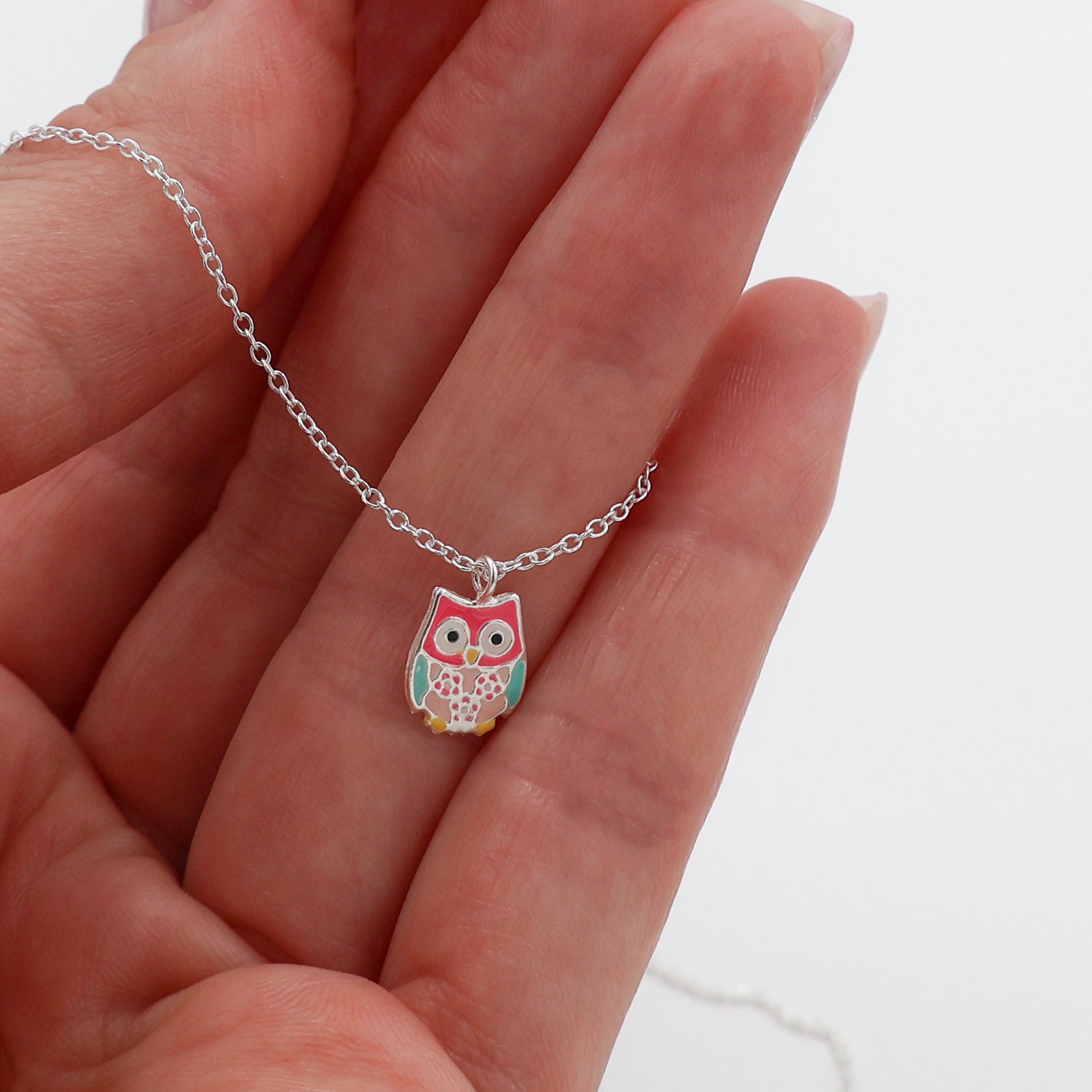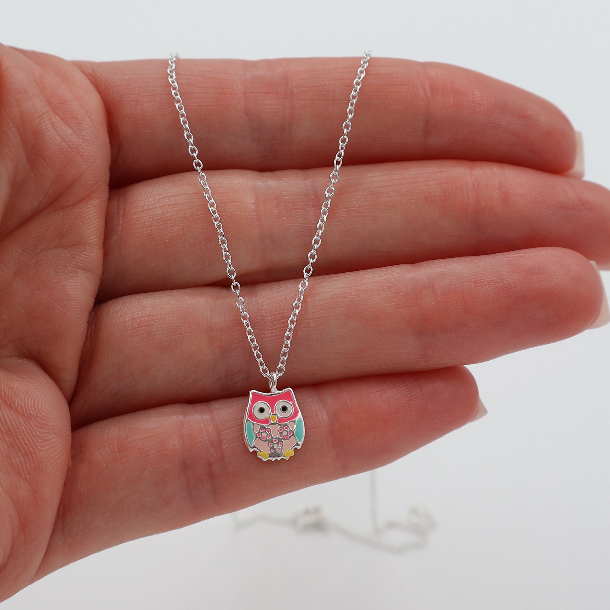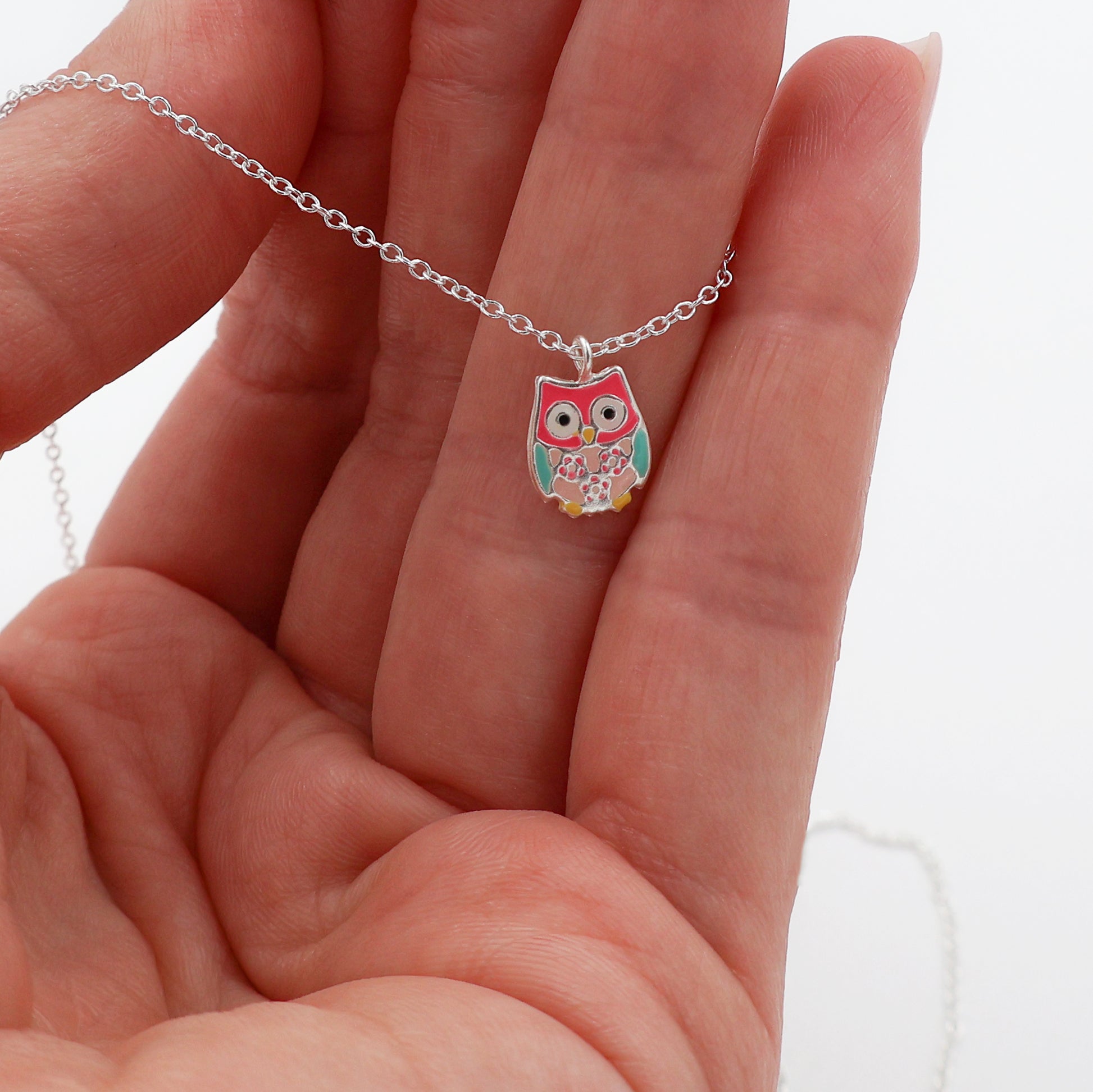 Sterling Silver Necklace with a Multicolored Owl Pendant