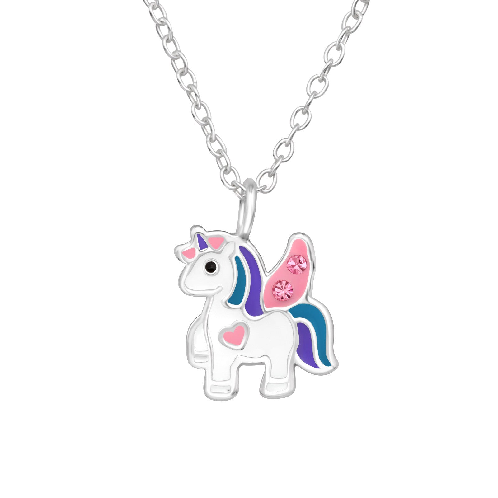Sterling Silver Unicorn Necklace with Pink Sparkling crystals - for Kids