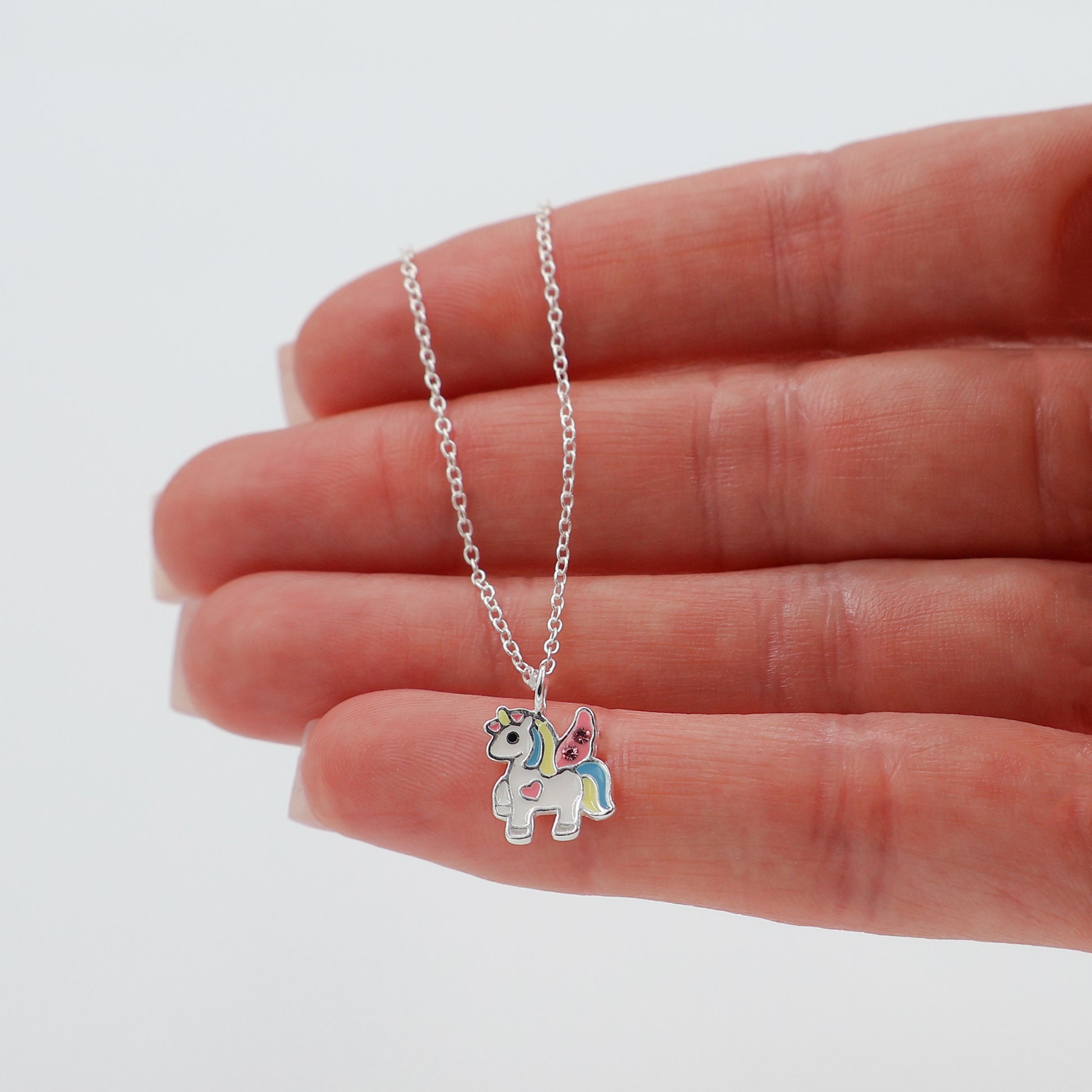 Sterling Silver Unicorn Necklace with Sparkling crystals - for Kids