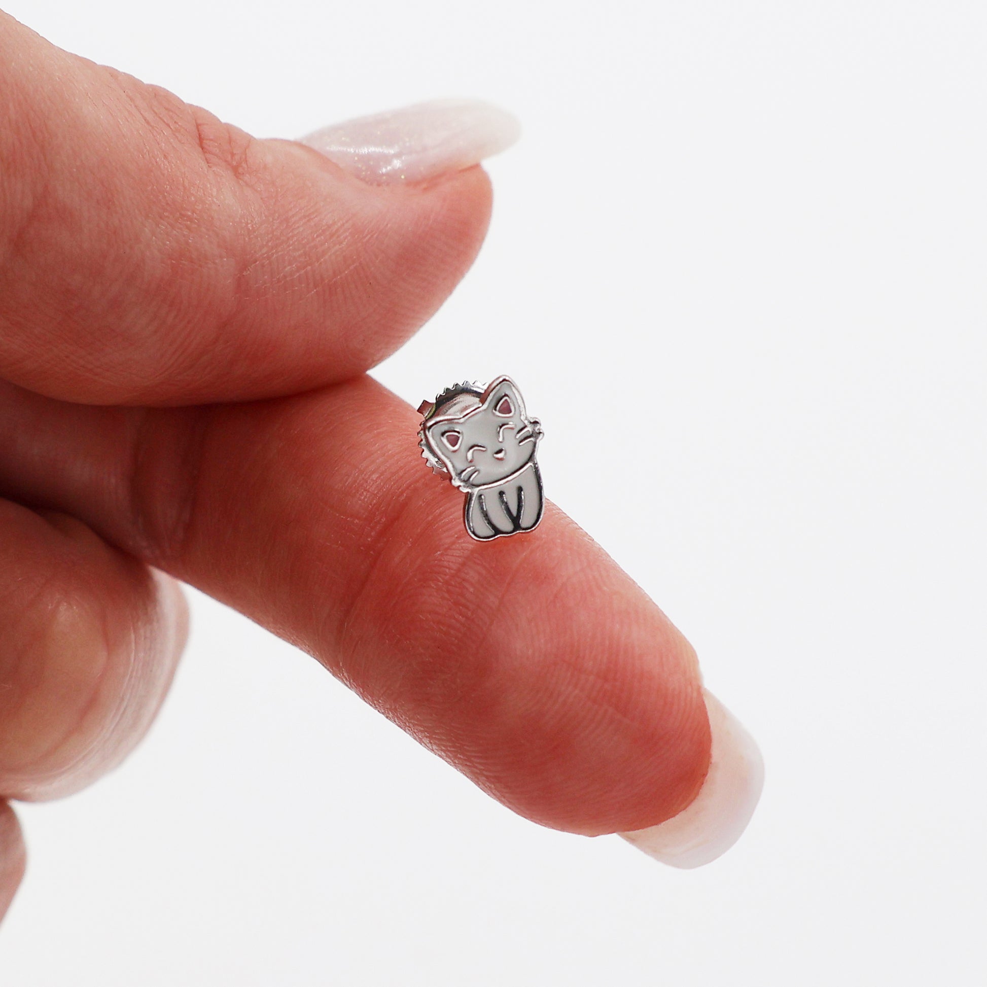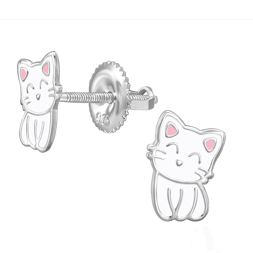 Threaded Screw-Back Cat Stud Earrings