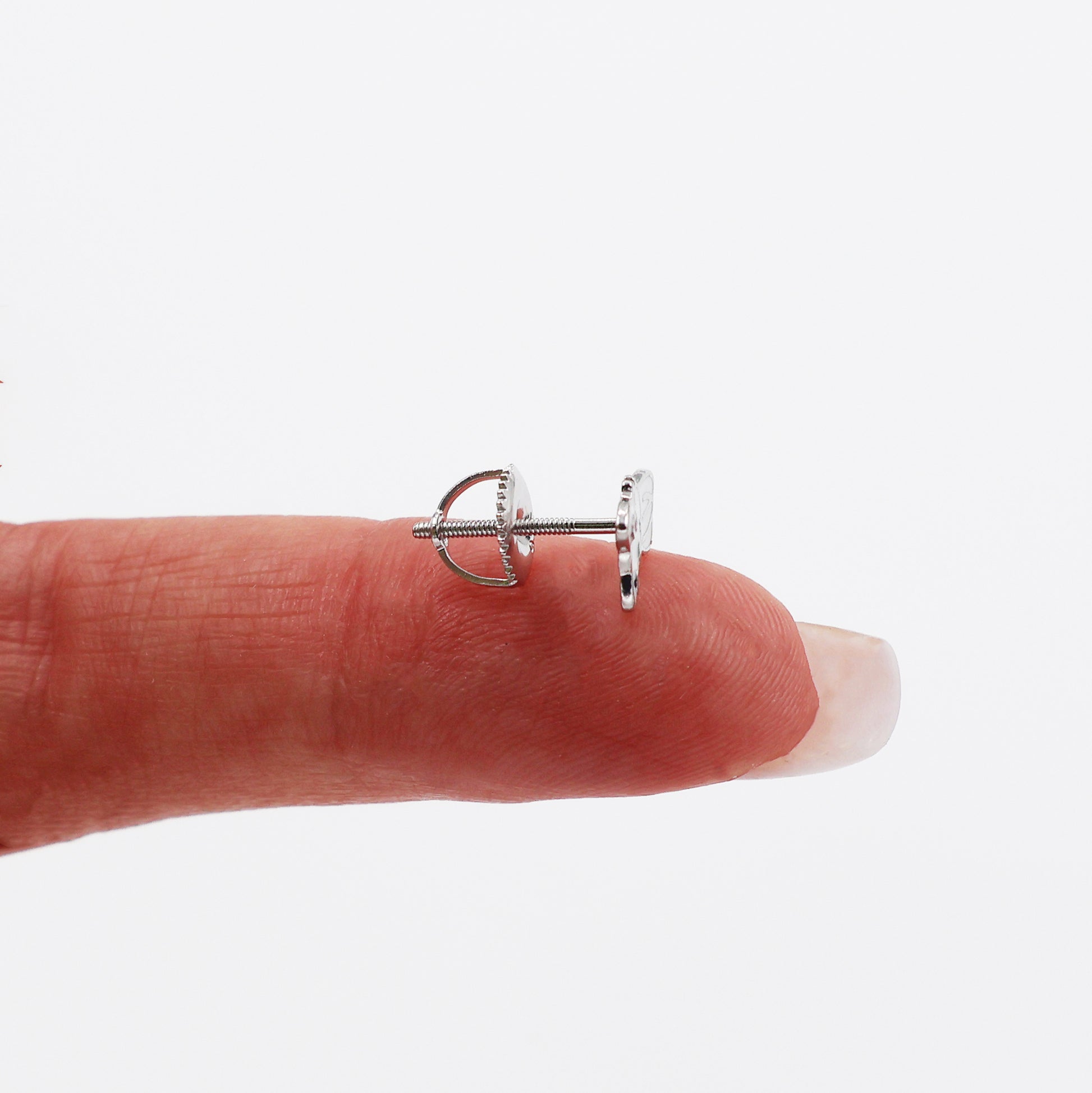 Each earring is plated with rhodium to enhance durability and maintain its bright, polished shine over time. The threaded screw-back stud closure fastens securely by screwing into place, offering both comfort and safety for everyday wear.