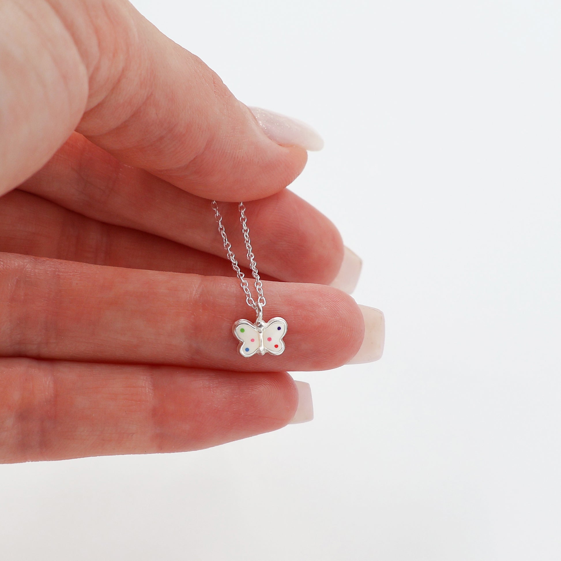 Sterling Silver Jewelry Set - Necklace and Stud Earrings White Butterfly Pendant