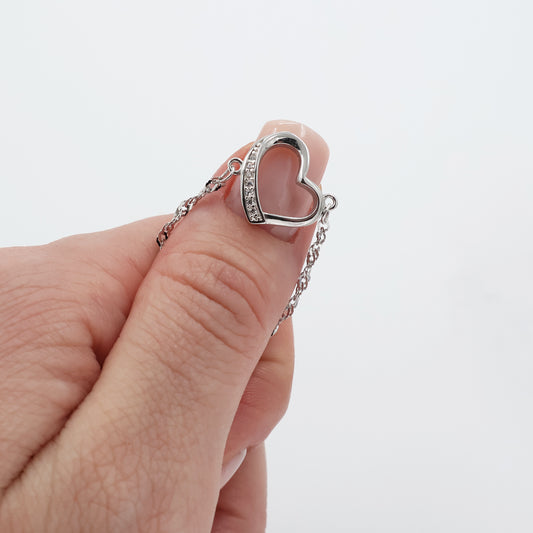 Brățară Inimă cu Lanț Singapore și Bandă din Zirconii Albe