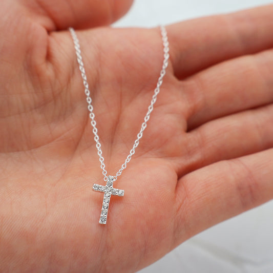 Colier argint 925 pentru femei - pandantiv cruciuliță cu 12 pietre zirconia