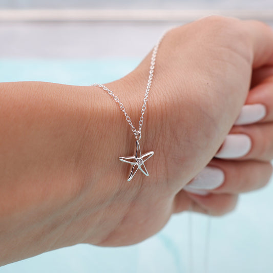 Colier argint pentru femei - pandantiv stea și zirconia strălucitoare centrală