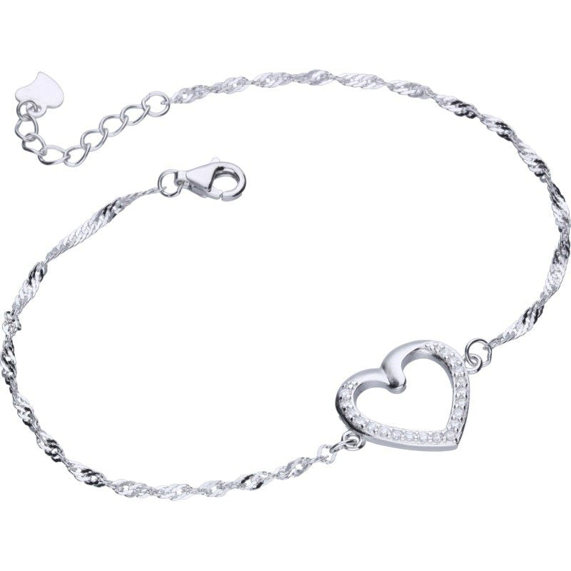 Brățară din argint 925 placată cu rodiu, cu lanț Singapore și inimă cu zirconia albe