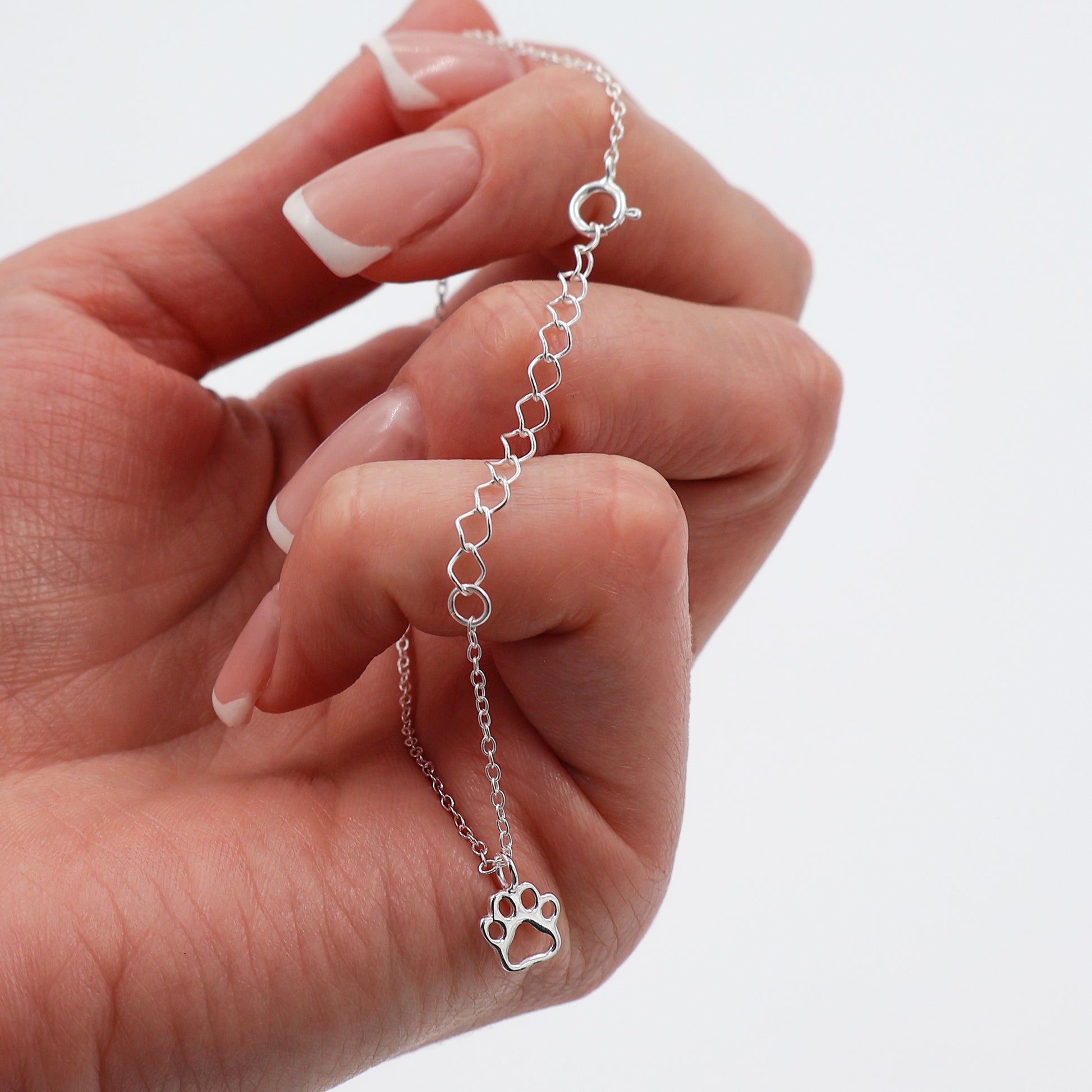 Această brățară elegantă este realizată din argint 925 și are un pandantiv mobil în formă de lăbuță, cu design contur, care alunecă ușor de-a lungul lanțului.