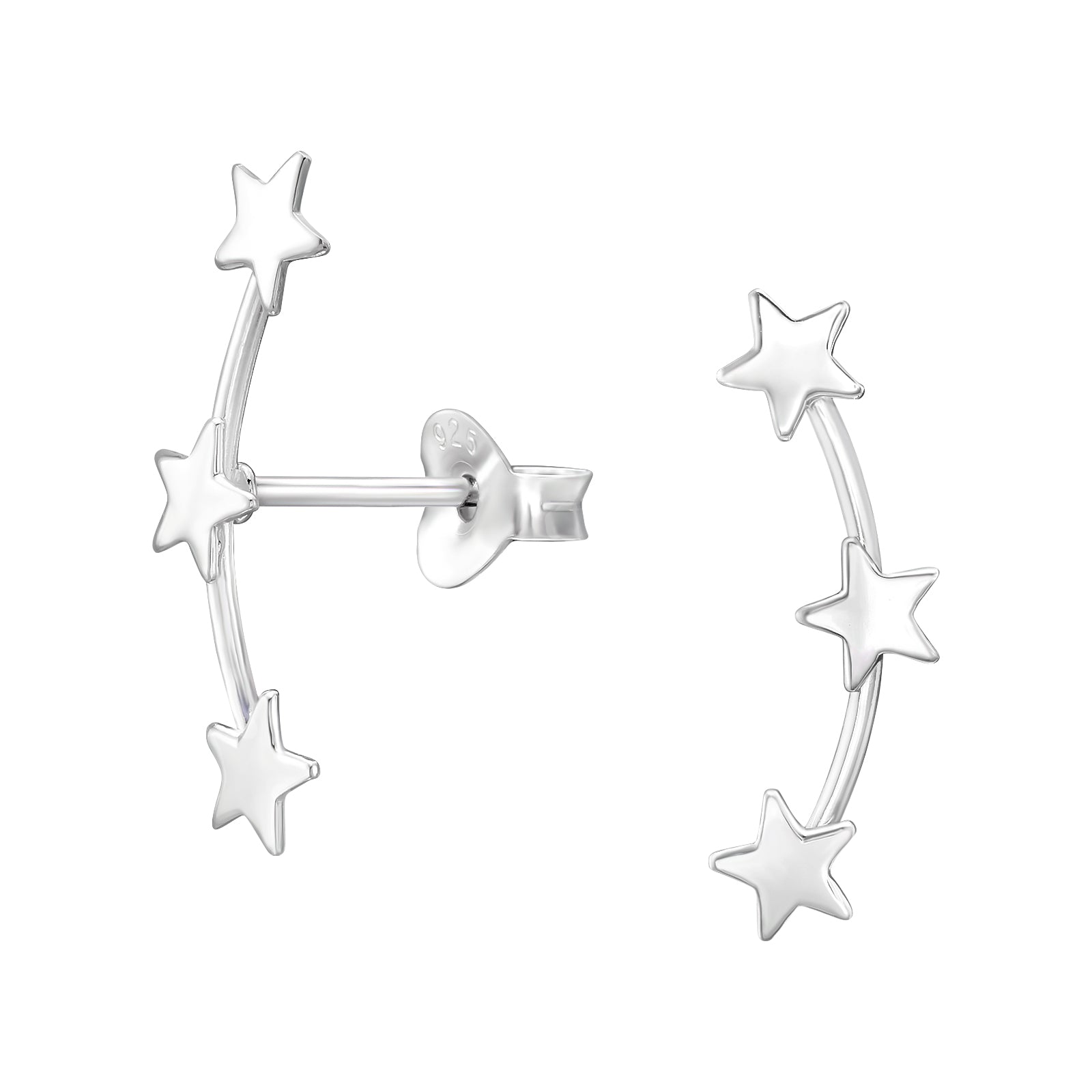 Cercei din argint pentru femei - 3 steluțe dispuse pe o bandă elegantă