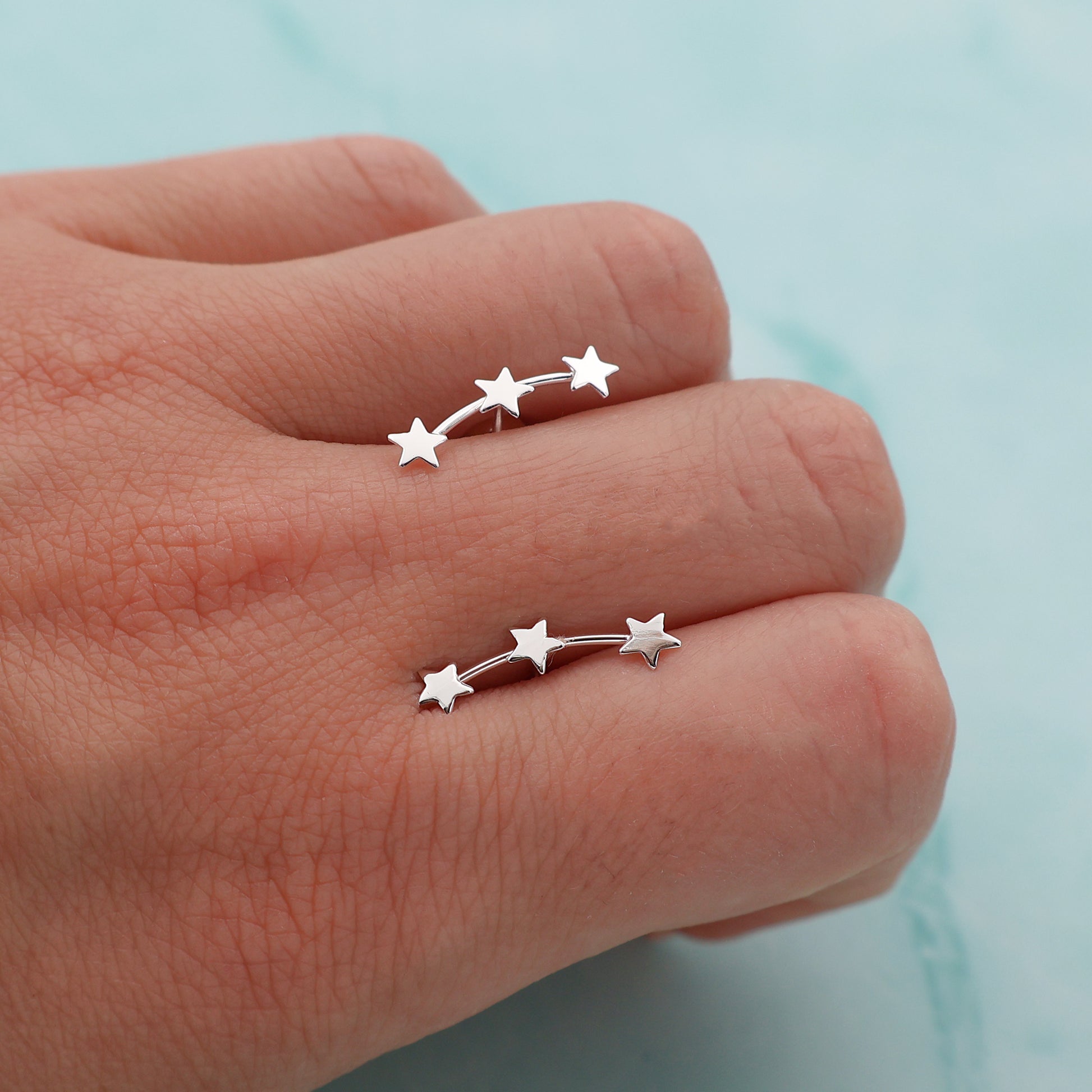 Acești cercei eleganți din argint 925 sunt placati cu un strat fin de argint 999, conferindu-le o strălucire intensă și durabilă. Designul lor distinctiv prezintă trei steluțe delicate, aliniate de-a lungul unei benzi alungite, oferindu-le un aspect rafinat și modern.
