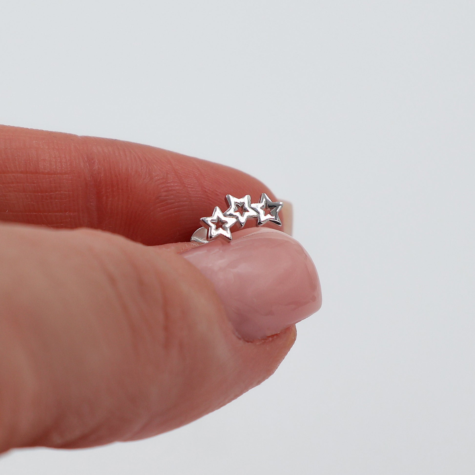 Designul lor delicat prezintă trei steluțe unite, creând un aranjament armonios, asemănător unei constelații. Fiecare stea este fin lucrată, cu suprafețe netede care reflectă subtil lumina, adăugând un strop de strălucire cerceilor.