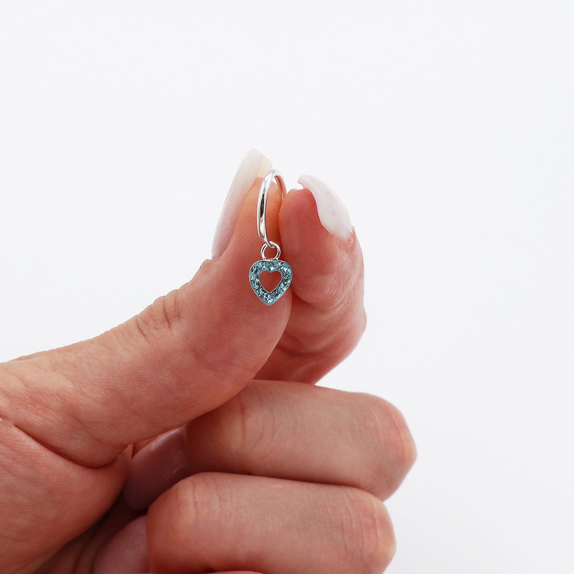Acești cercei creole impresionează printr-un design modern și rafinat, fiind delicat evidențiați de un charm în formă de inimă, decorat cu 24 de cristele bleu strălucitoare pe ambii cercei.