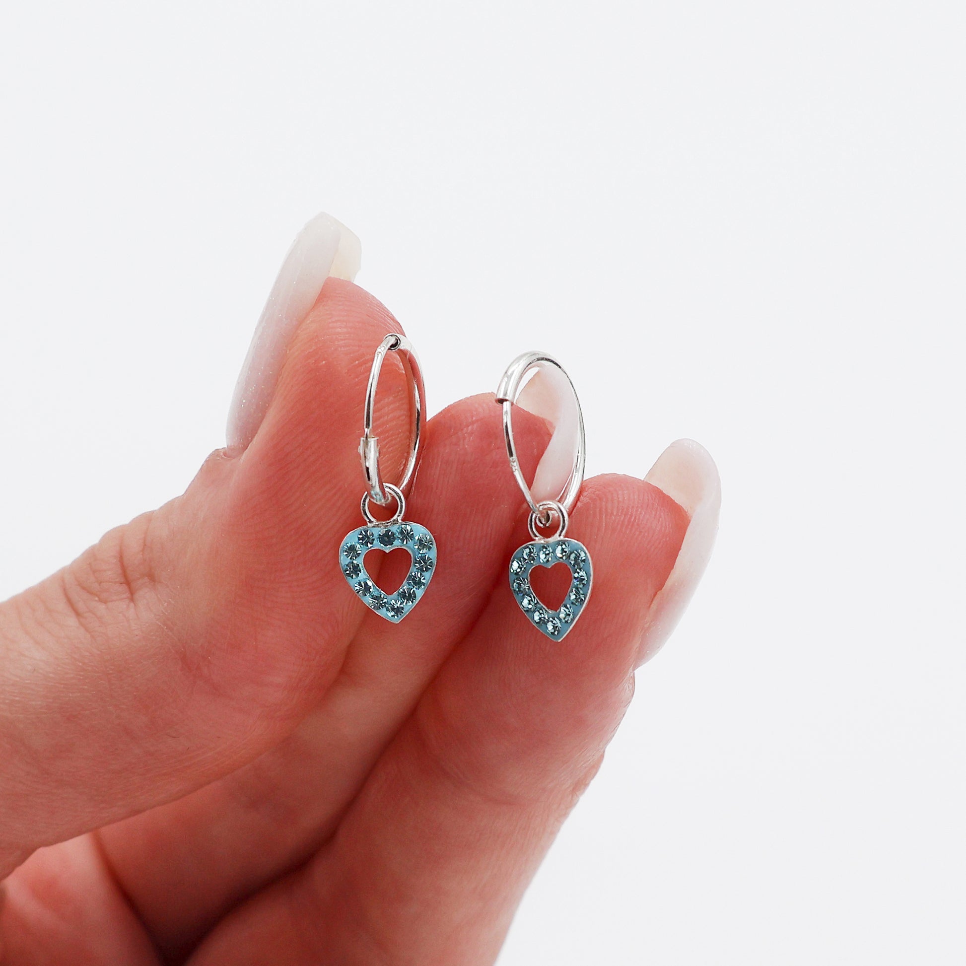 Cercei din argint pentru femei – inimioare cu 24 cristale bleu